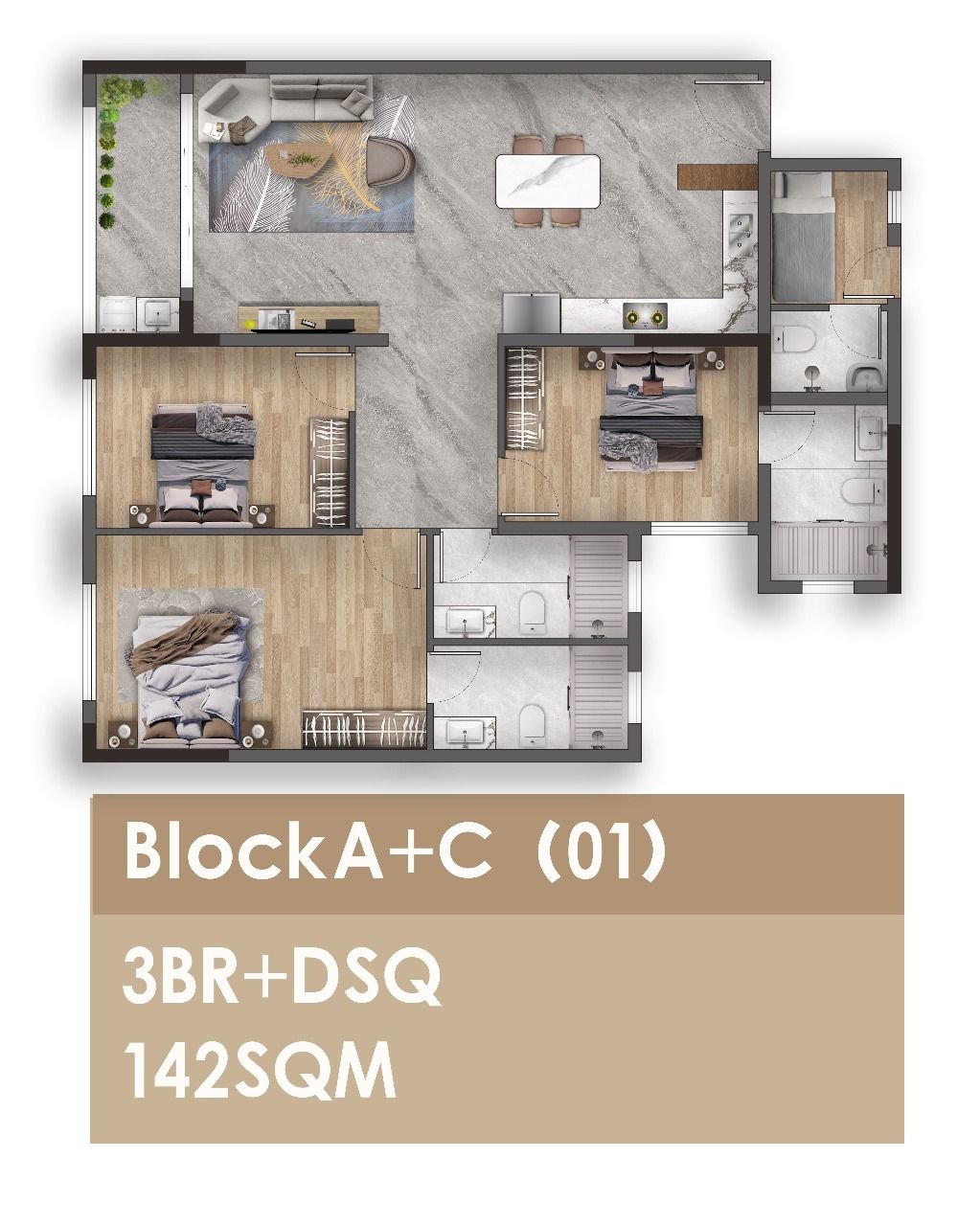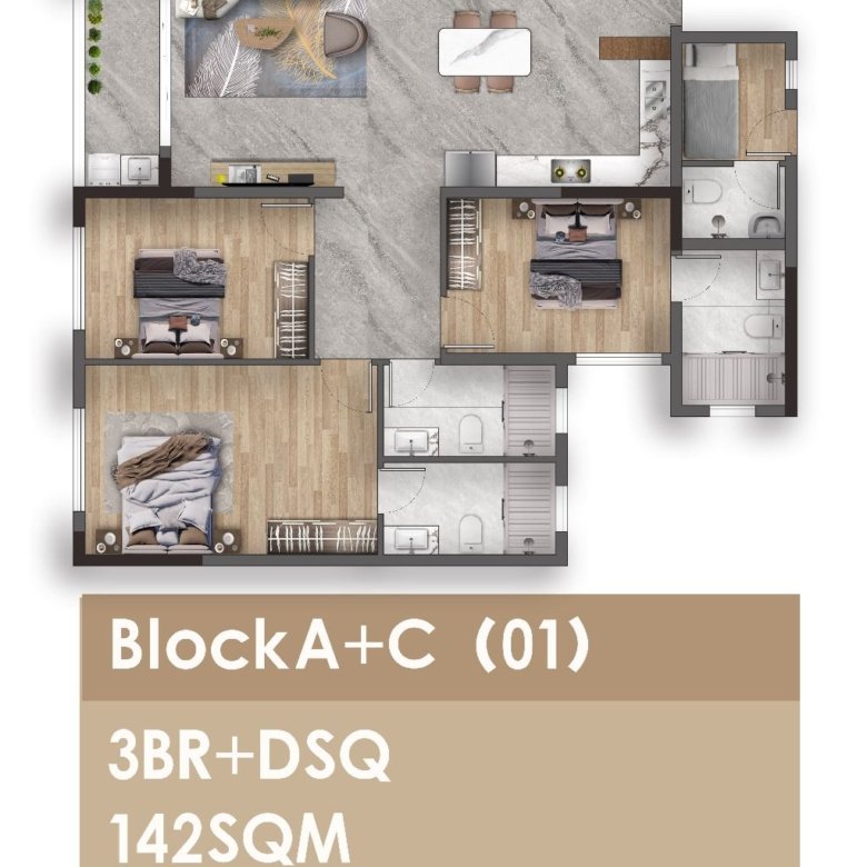 3 Bedroom + DSQ- from 142 sqm – from Ksh 14.7M