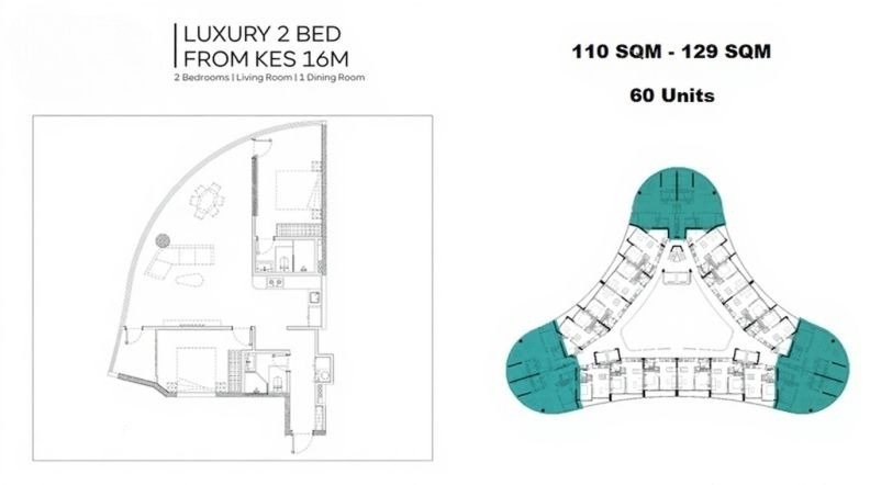 2 Bedroom Luxury (110–129 sqm) – From KES 14M